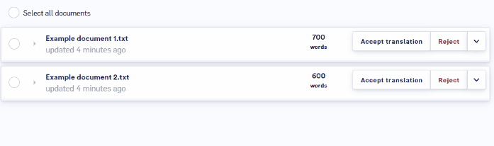 When documents have been marked as done in translation, the assigned reviewer will be notified (both by email and in the application) that the document is ready for review. Reviewers will only receive these notifications if they have accepted the assignment before the document has been marked as done in translation. Application notification: