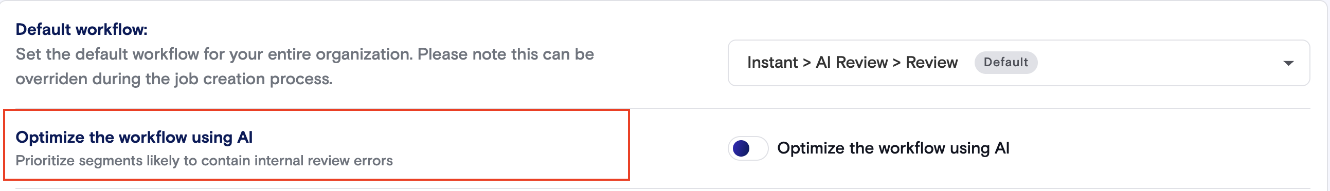 Select a workflow with AI Review during job creation:- Instant > AI Review > Review