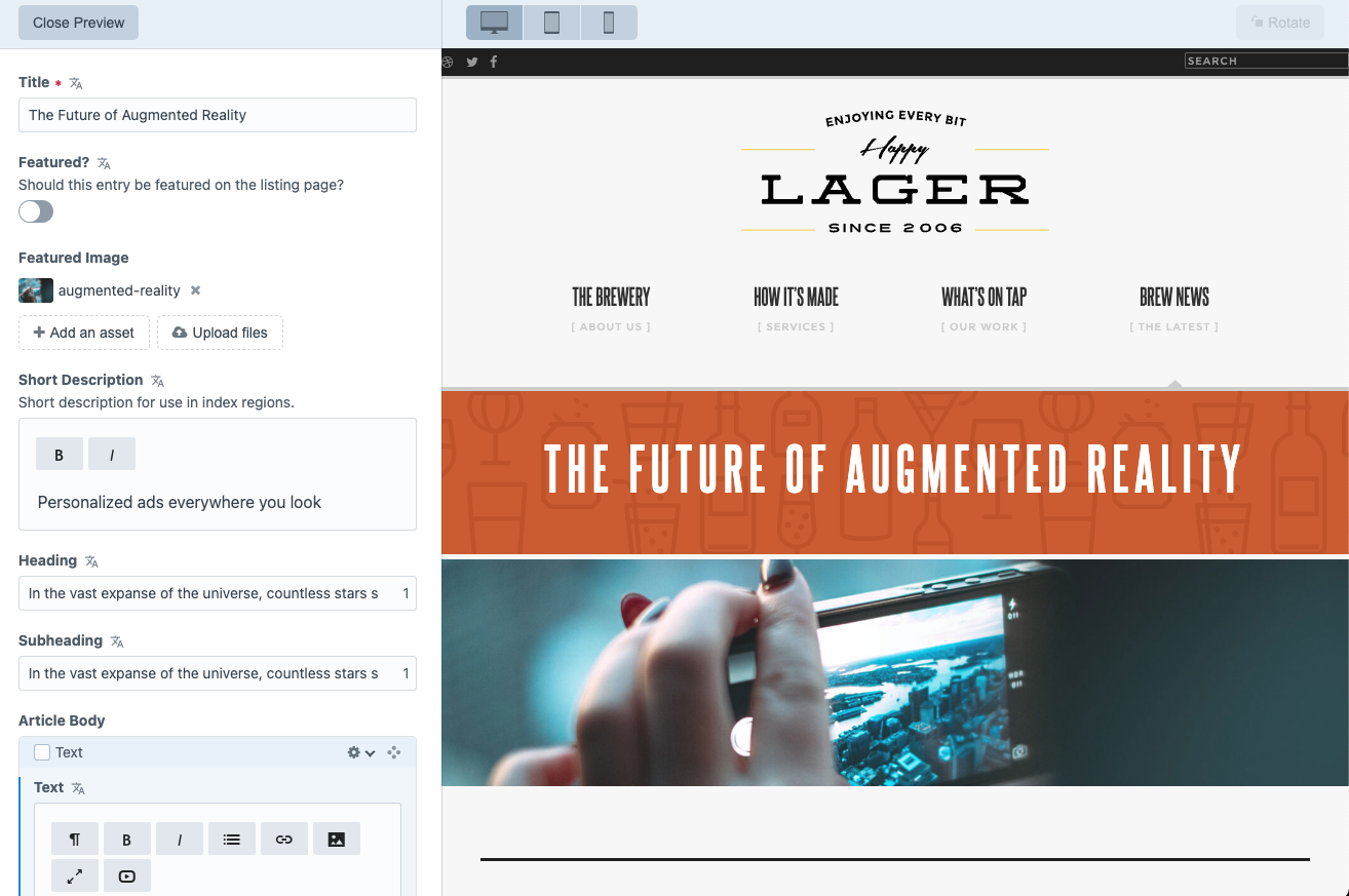 Click Preview in the Upper Right Hand corner to see a Preview of the content