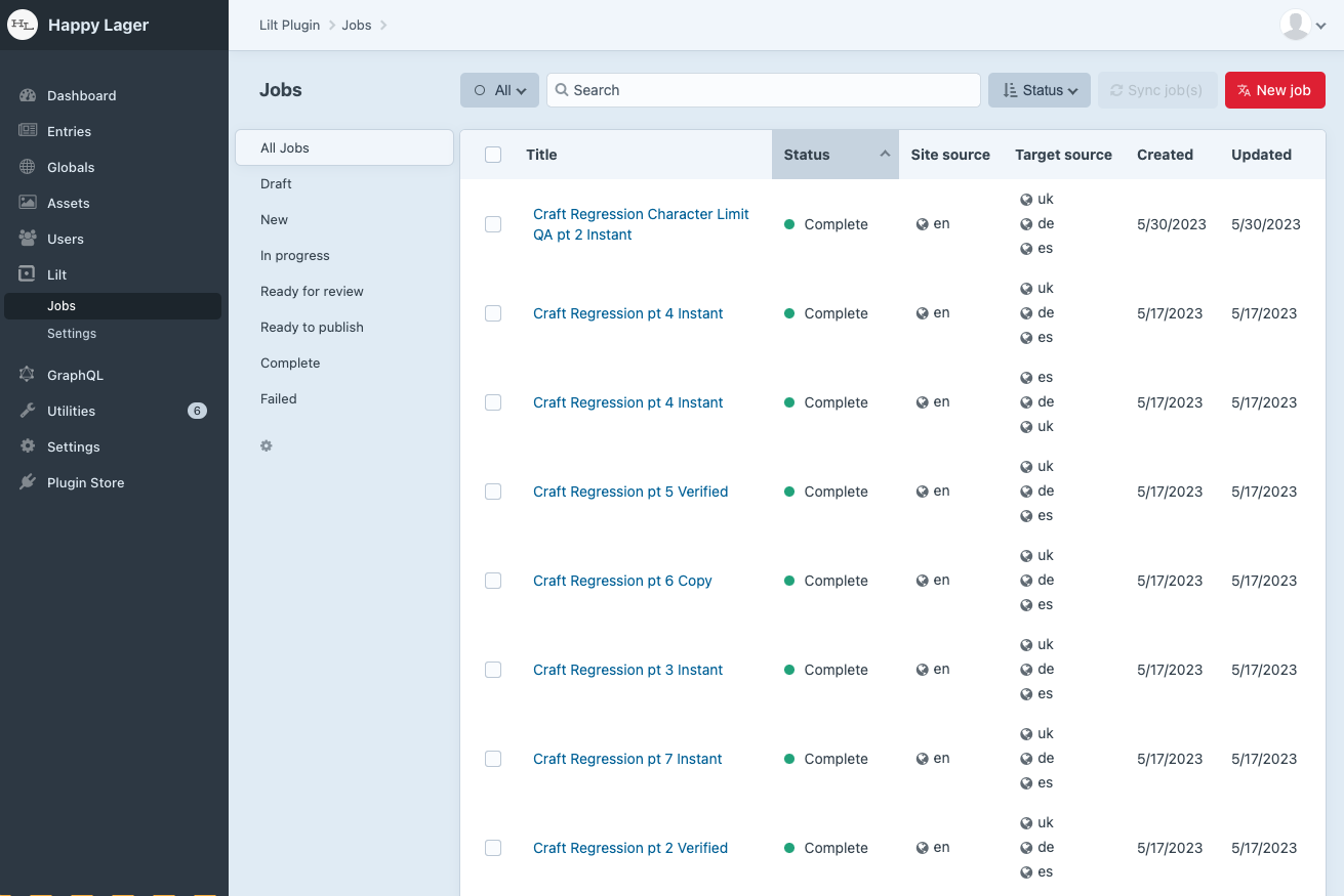 - LILT periodically checks for Projects marked as Done. When this is detected, the translated content is automatically sent back to Craft.Your language pair statuses will update in real time as they are delivered.