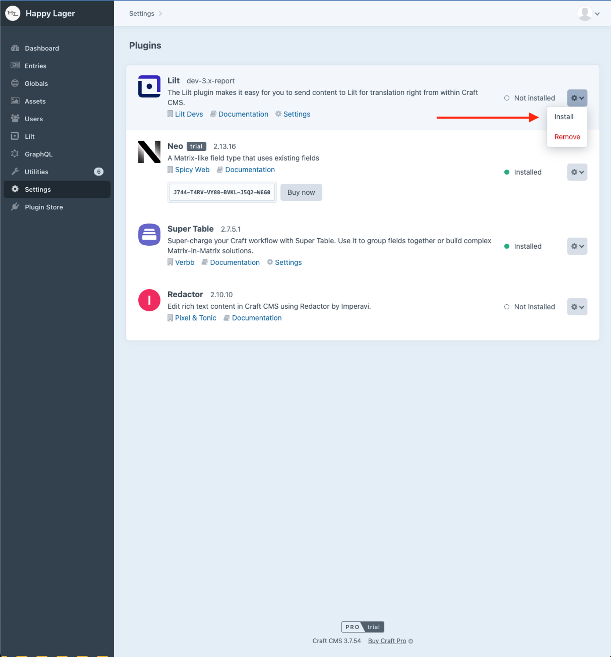 Find the LILT plugin in the list of available plugins and click on the “Install” button.