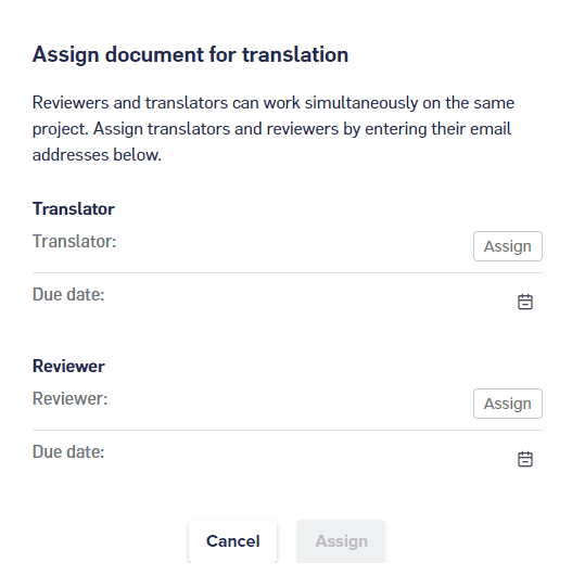 button to assign them to the document. They will be sent an email from noreply@em.lilt.com letting them know they have been assigned. Then the linguists can accept or reject the assignment.