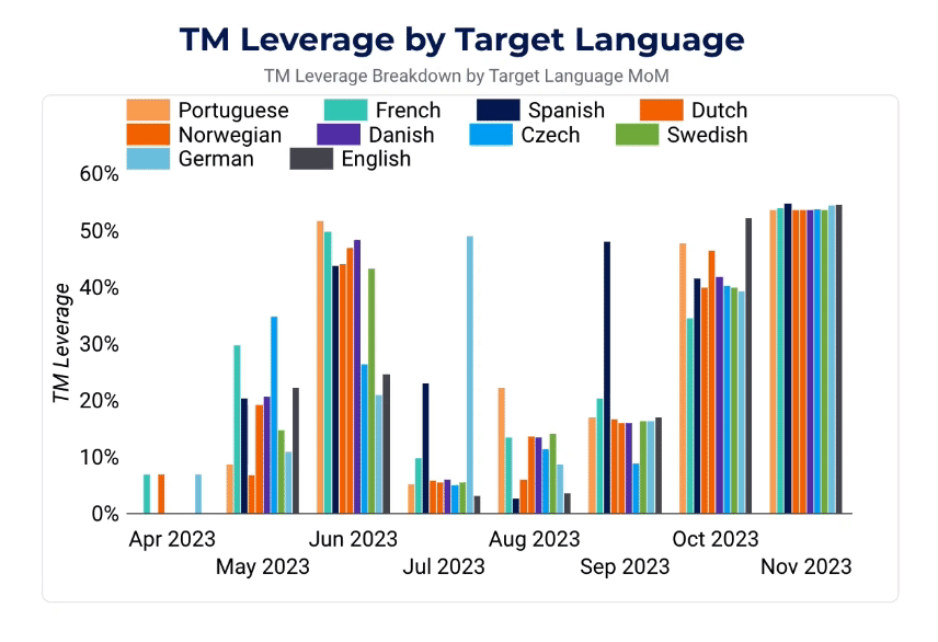 TM Leverage by Language, monthly trend