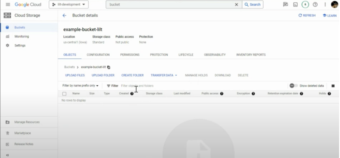 - Input the bucket name into LILT