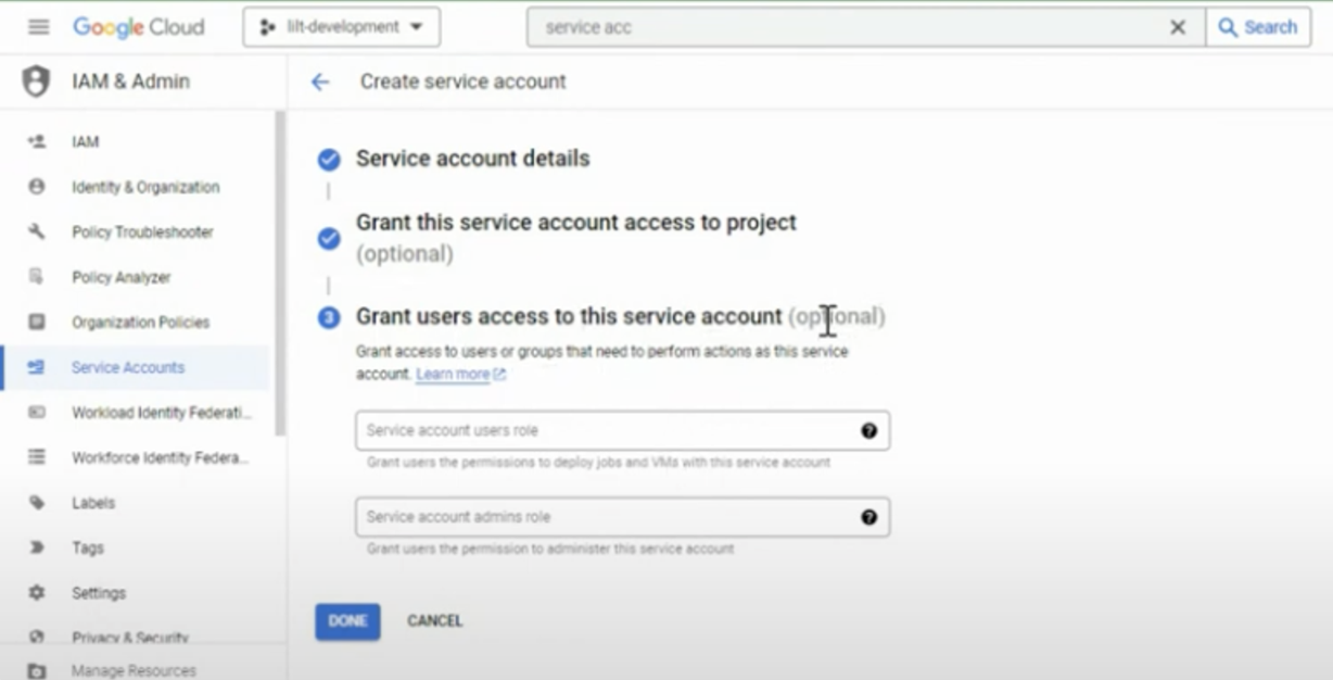 Grant users access to this service account
