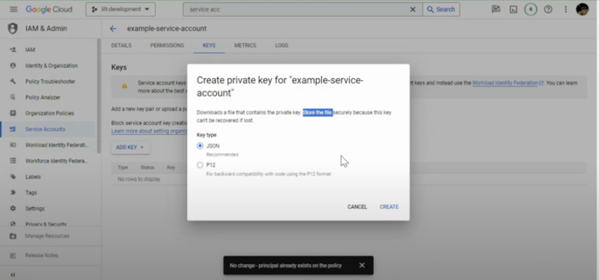 Create a Service Account and get Keys