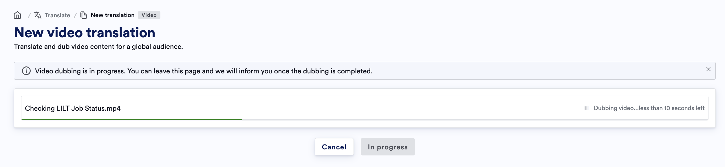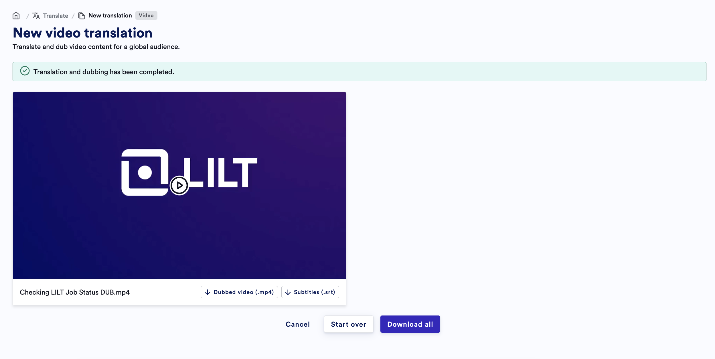 Please note: LILT does not support re-integration of the subtitle file into the dubbed video at this time.