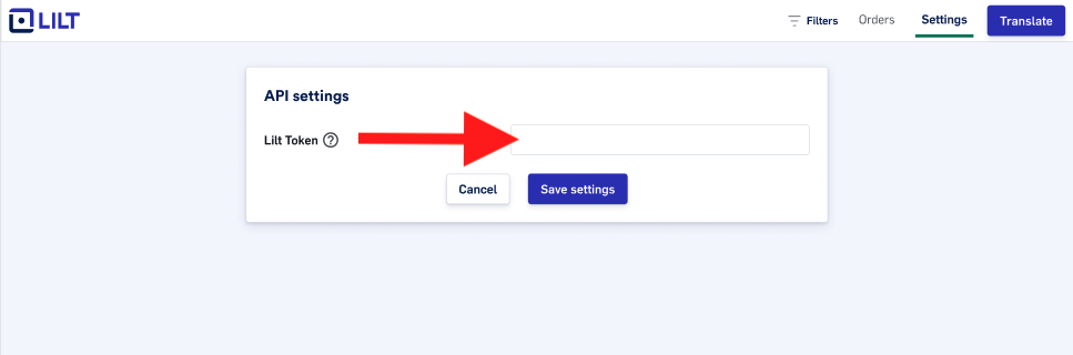 When the app is installed, you’ll need to provide a LILT Token to complete the connection.