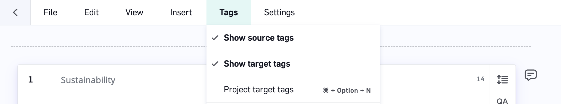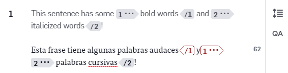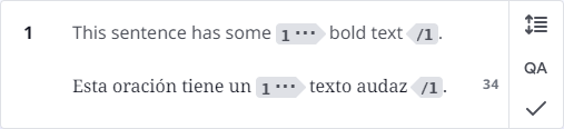 Once a segment has been translated and confirmed, LILT will automatically project the source tags into the translated text. For this reason, tags can generally be ignored during translating. For more information on our Research Team’s work on tag projection, see this article.Tags
