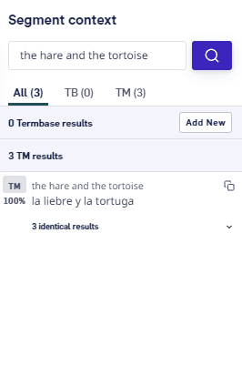 If there are multiple suggestions, they can be viewed in the Segment Context pane on the right side of LILT Translate. TheSegment context