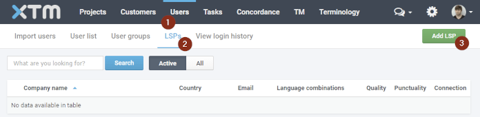 - Submission via XTM: Create new projects in LILT by creating a project in XTM using a project template assigned to the LILT LSP.